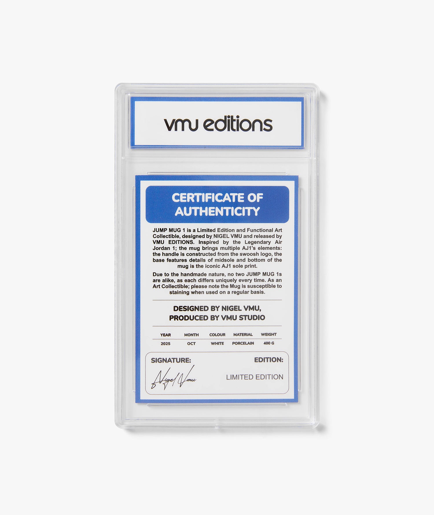 The JUMP MUG 1 is a Limited Edition Art Collectible Mug, inspired by the iconic Air Jordan 1 sneaker.
